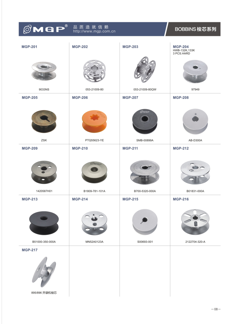 "MGP"专业精品梭芯、梭壳为行业一线生产商与各大企业配套,为中国驰名商标、中国好品牌以多层次,高品质生产为基础,多元化的满足客户需求。把产品分为五大层次:分别为A101、A102、A103、B210与C311。做到人无我有,人有我优的强 品质。